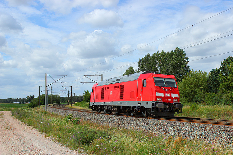 |  | 245 022 war aus der heimatlichen Werkstatt in Niebüll zum Einsatzort Leipzig Hbf unterwegs. |