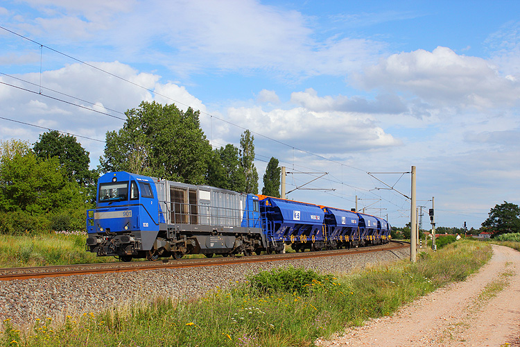 |  | Am 22.07.2020 fuhr HLG 273 002 mit einem Kalizug in Richtung Wittenberge. |