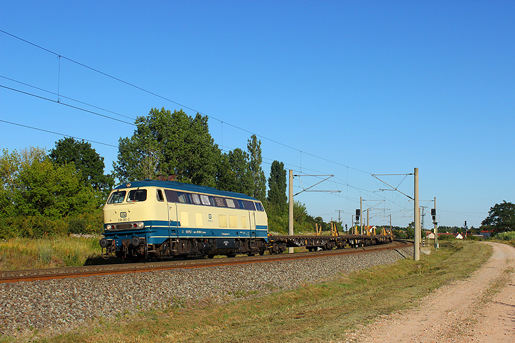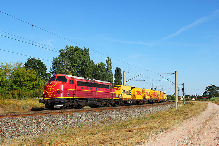 |  | RPRS 218 381 war mit einem Strabag-Bauzug als DGS 88167 von Königsborn nach Rostock unterwegs. |