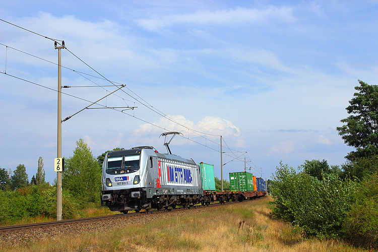 |  | Vor dem Containerzug DGS 99699 Leipzig Wahren - Hamburg hing Metrans 187 511. |
