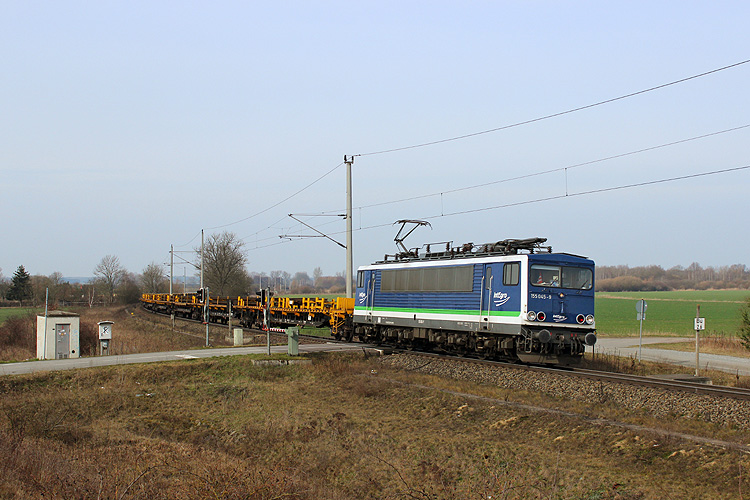 Am 13.03.2017 kam die Integro 155 045 der Press mit einem Langschienenzug aus Richtung Salzwedel. |