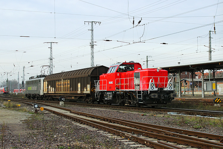 Am 24.11.2015 gab es wieder einmal Testfahrten mit der Alstom-Hybridlok 1002 004. Dieses Mal wurde nach Tangerhütte und zurück gefahren, als Bremslok fungierte erneut 139 558 von Railadventure. |