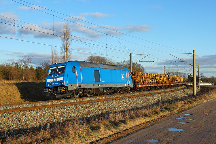285 104 der Press war am 16.02.2016 mit einem Holzzug aus Richtung Oebisfelde gekommen und brachte diesen nach dem Kopfmachen weiter zum Zielbahnhof Niedergörne. |