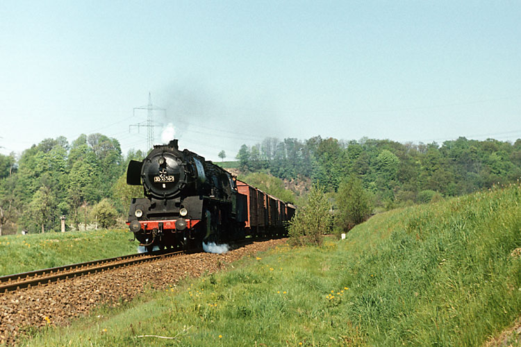 Am nächsten Tag zog ebenfalls eine ehemalige Stendalerin, die 50 3536 den N 61345 von Döbeln nach Nossen, aufgenommen bei Niederstrigis, 16.05.1982. |