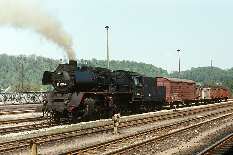 Im Anschluß fuhr 50 3529 einen Güterzug nach Deutschenbora, das sie soeben erreicht hat, 19.12.1982. |
