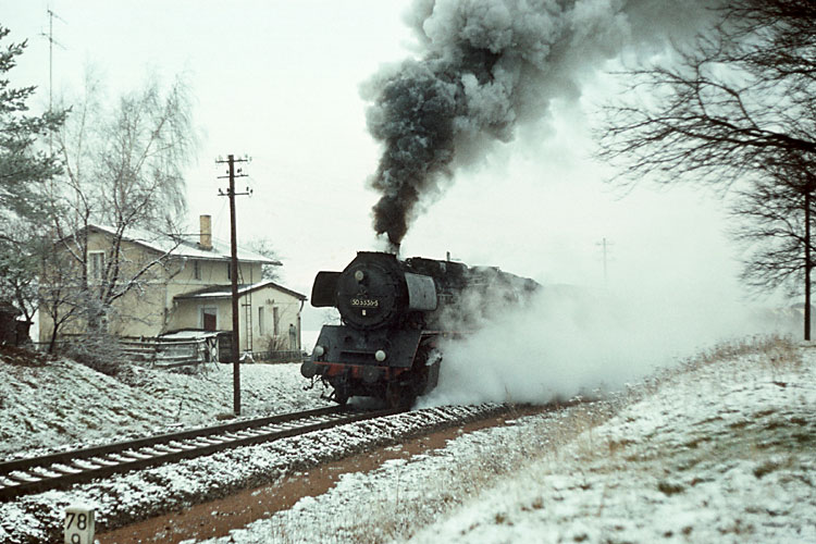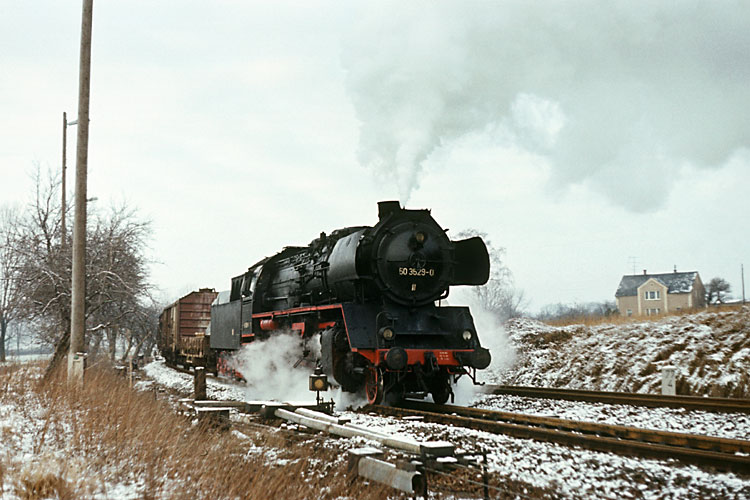 Die nächste Tour zu den Nossener 50 unternahm ich am 18.12.1982, 50 3536 war da mit dem N 61348 von Meißen nach Nossen unterwegs, aufgenommen bei Deutschenbora. |