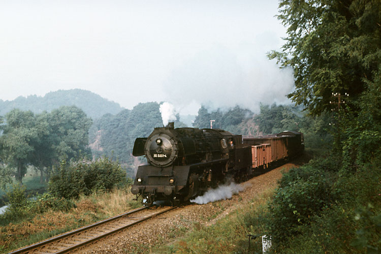 Eine Stunde später ist 50 3539 mit dem N 61345 auf dem Weg nach Meißen, dort wird der Zug von einer Ellok bis zum Zielbahnhof Dresden-Friedrichstadt übernommen, 16.05.1982. |