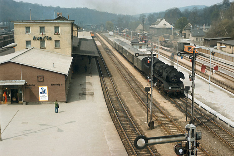 Der P 17624 mit 50 3654 hat seine kurze Reise nach Blauenthal in Aue begonnen, 30.04.1984. |