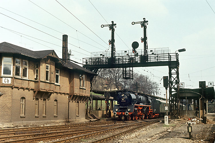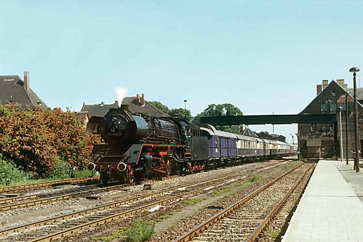 41 1144 verläßt nun mit dem "Rheingold" für die Schlußetappe nach Oebisfelde den Bahnhof Haldensleben. |
