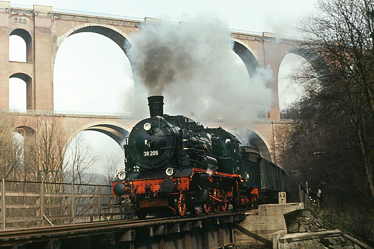 Am nächsten Tag ging es von Gera über Adorf und Zwickau zurück nach Leipzig - 38 205 übernahm die erste Etappe dieser Fahrt, aufgenommen in Greiz. |