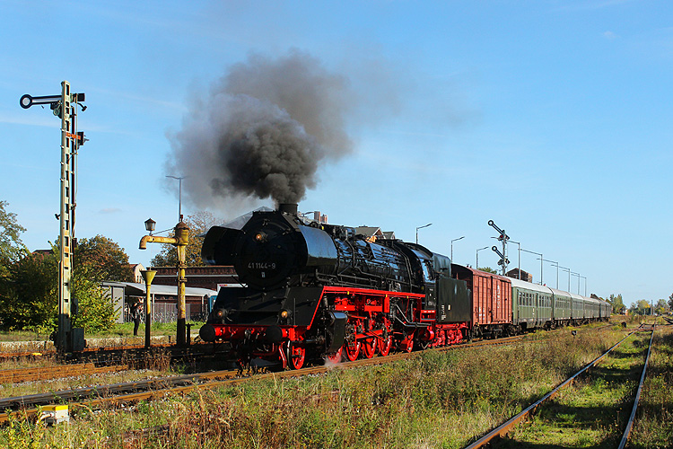 Am 02.10.2022 ging es nach vielen Jahren mal wieder zum Dampflokfest nach Staßfurt. Vor dem Fotogüterzug war unter anderem Gastlok 41 1144 zu sehen. |
