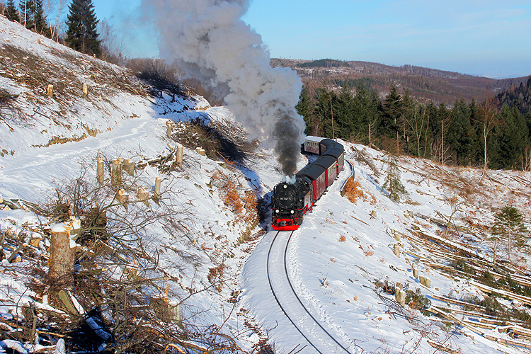 Am 20.01.2024 lud das schöne Winterwetter zu einer Harztour ein. Zunächst ging es an die Harzer Schmalspurbahn zwischen Steinerne Renne und Drei Annen Hohne - 99 7232 mit dem P 8943 Wernigerode - Brocken. |