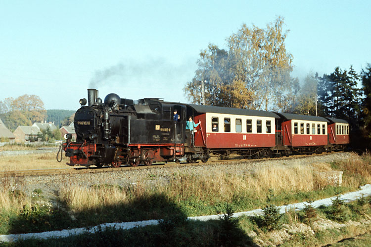Meine letzte Aufnahme vom P 14465 mit 99 6102 am 05.10.1986 schaffte ich beim Einrollen in Hasselfelde. |