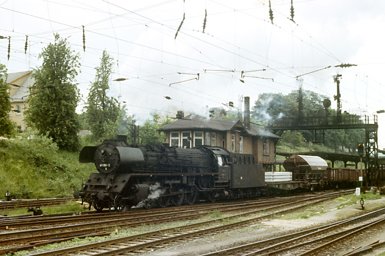 41 1182 hat mit dem Dg 55445 Orlamünde passiert, 06.09.1985. |